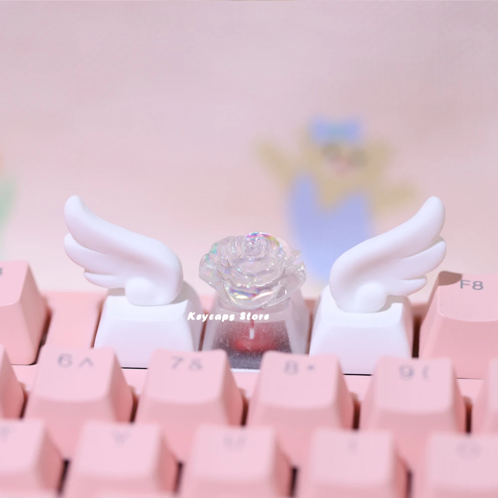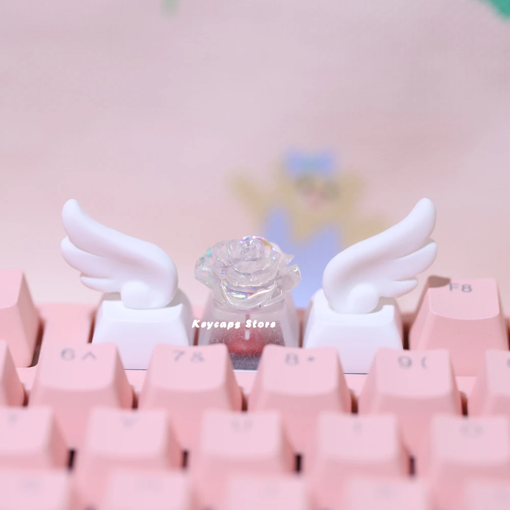 Winged Keycaps For Mechanical Keyboard Keycaps Individualized three-dimensional Artisan Cartoon white Kawaii Keycap