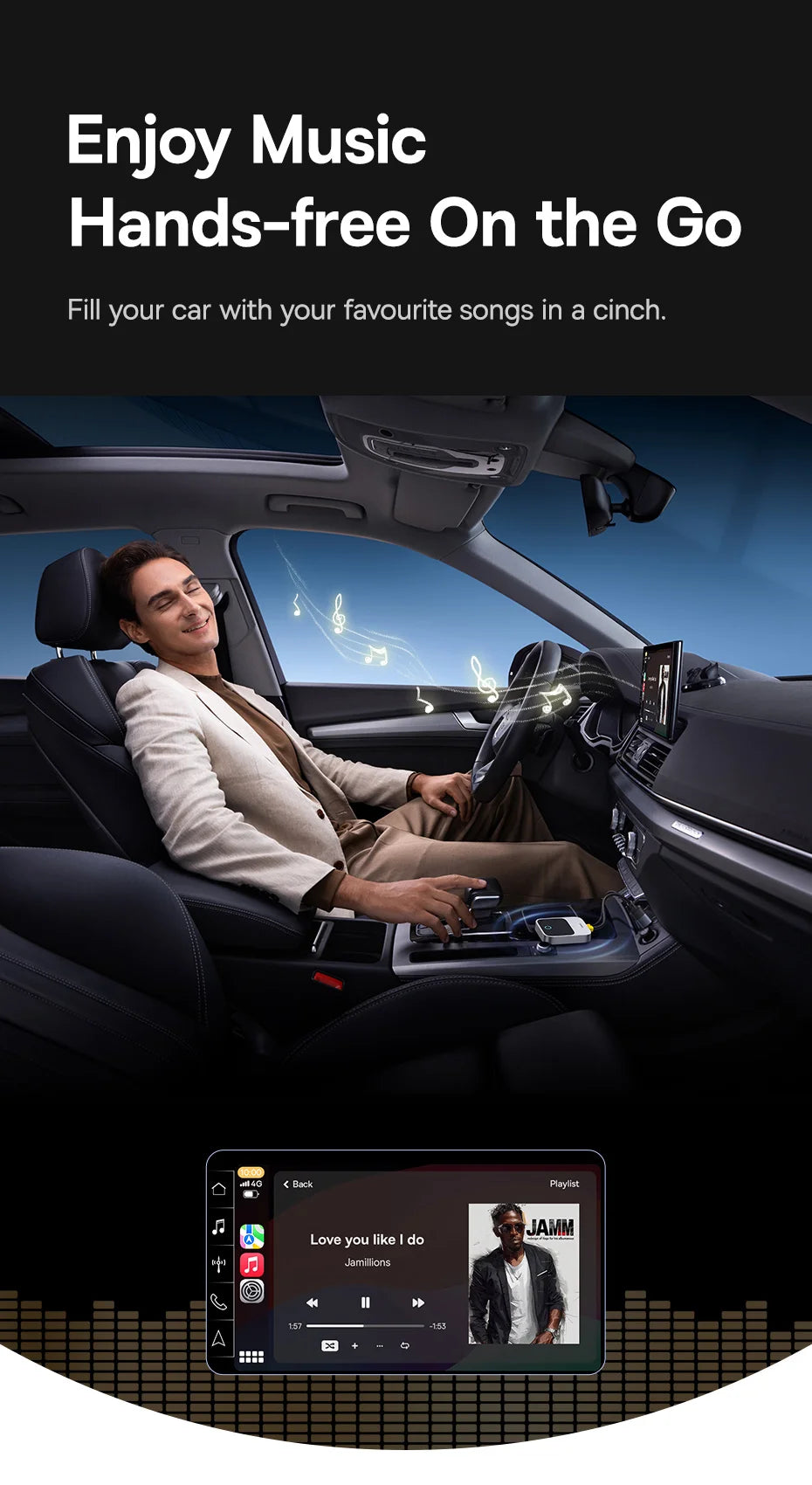 The adapter leverages Bluetooth 5.0 to enable faster pairing and a more stable wireless link, while a 5V/1A power input ensures reliable operation during extended drives. It supports iPhone 6 and newer on iOS 10+, allowing smooth access to Navigation, Music, and Calls from the car’s touchscreen. With auto-connect, the device automatically links as soon as you start your car, reducing setup time and interruptions. The combination of dual-screen controls and voice-assisted navigation enhances situational awareness, contributing to safer, distraction-free driving and a more integrated in-car experience.
