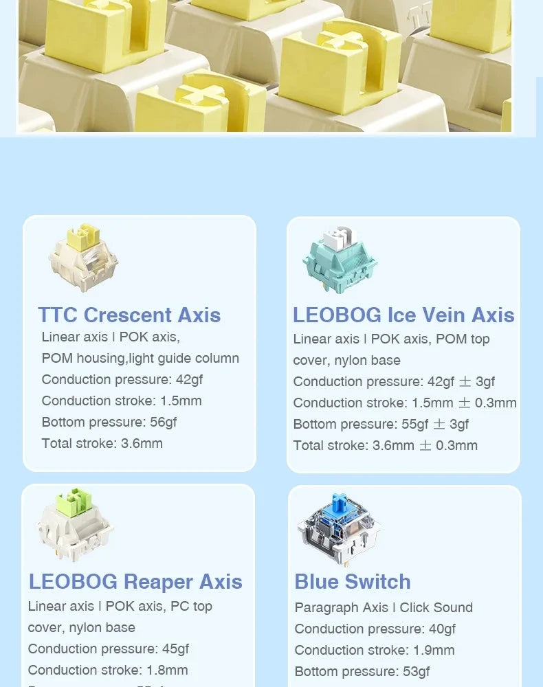 - Construction: Gasket-mounted structure to soften bottom-out and improve typing feel